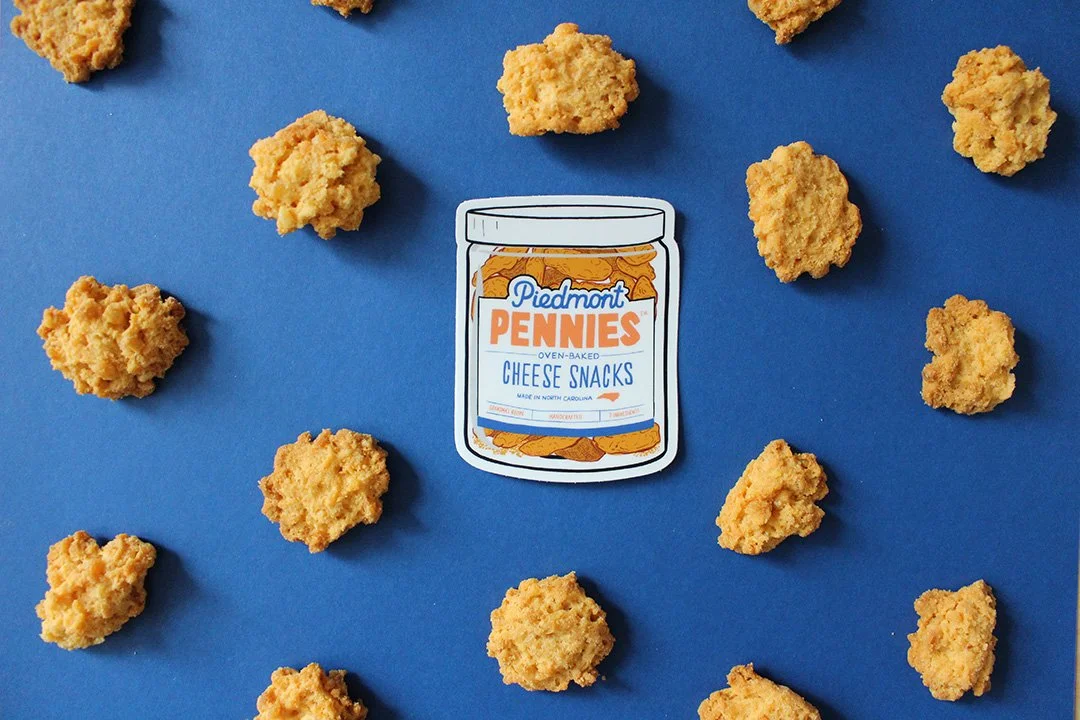 Piedmont Pennies is a North Carolina-based company that sells homemade cheese crackers called pennies, made from the owner’s grandmother’s recipe. When we started working together, Pennies were in 70 stores across 5 states!